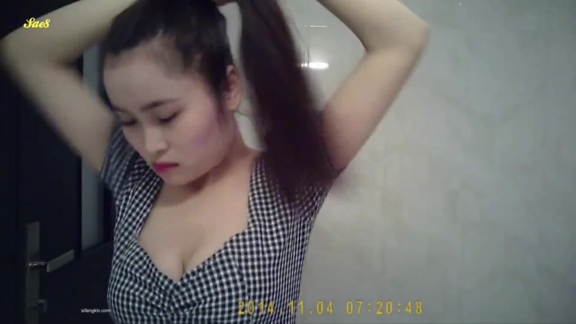 酒店浴室双面镜偷拍巨乳服务员